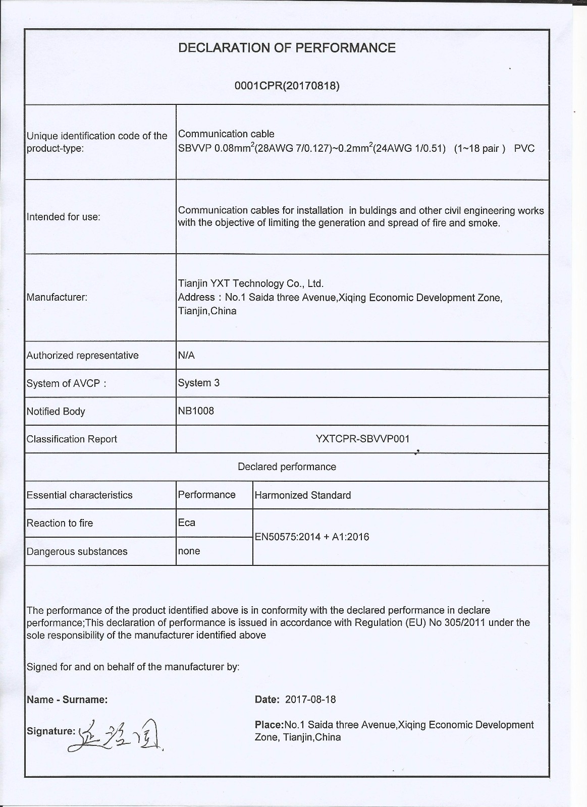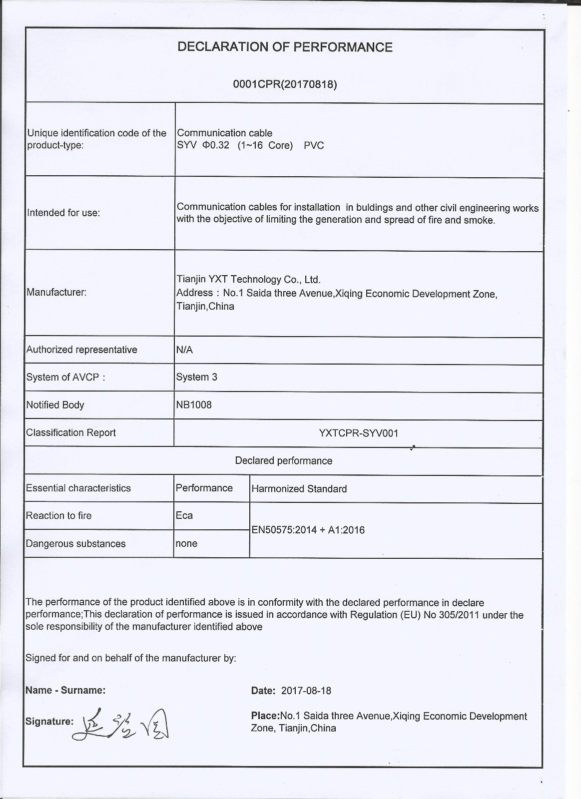 億鑫通CPR---DOP(declaration of performance)聲明!! 發(fā)布日期:2022-12-09 瀏覽量:33344 以下是我司的CPR---DOP(declaration of performance)聲明!!